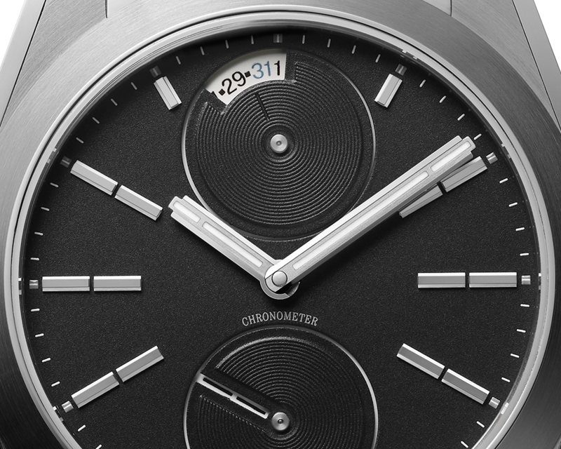 The movements, produced in partnership with Chronode SA, feature bridges and plates made of 100% recycled titanium.